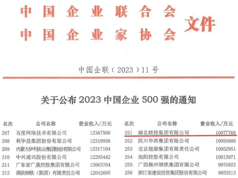 湖北日报:中国企业500强排名跨步前进103位 解码湖北联投顶压进位动力之源