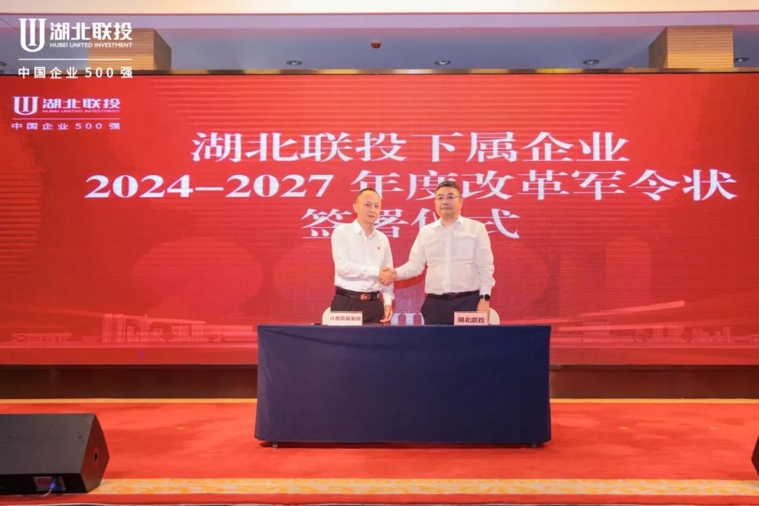 刘光辉与湖北建投集团党委副书记、董事长丁峻,自然资源集团党委副书记、董事长、总经理刘祖雄分别签订深化改革军令状。