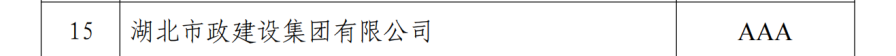 湖北市政集团及旗下基础设施公司,经过资料填报、湖北省建筑业协会推荐、初步核查、实地访谈、专家评审、等级审定、公示等一系列严格环节,被评定为AAA等级。该等级表示企业经营状况很好,信用记录优秀,发展前景很广阔,对履行相关经济和社会责任能够提供很强的安全保障,不确定因素对其经营和发展的影响最小。