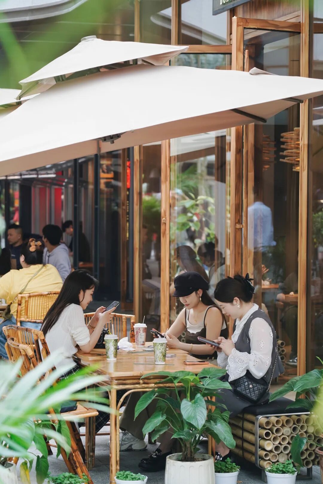 自然绿意被“种”进了商场的中庭、通道与下沉广场。