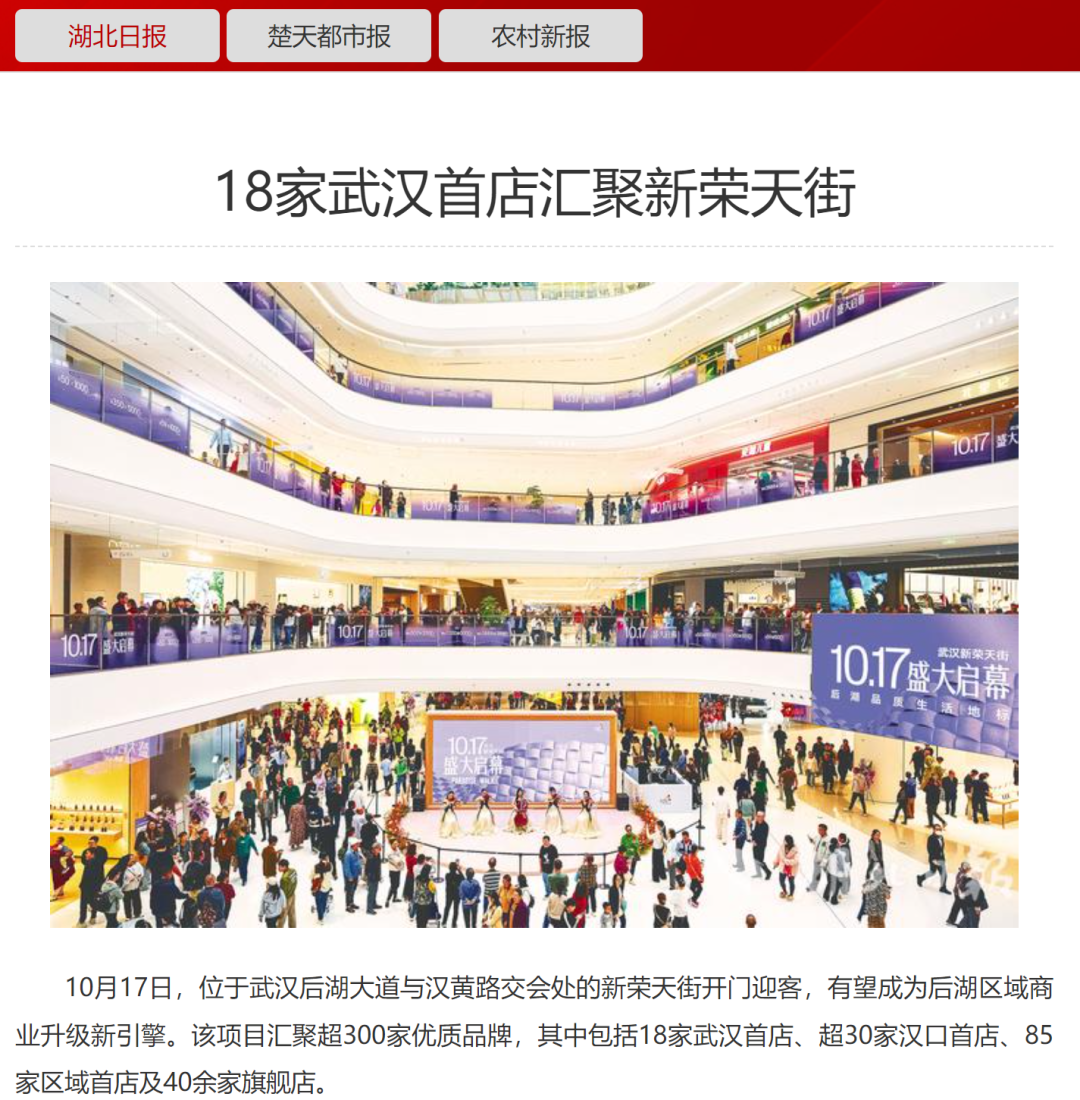 湖北日报:两个月上新三座商业体 湖北联投商业生态刷新城市幸福感
